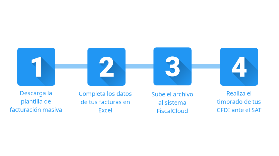 Carga una plantilla de Excel con la información de tus facturas, súbela a FiscalCloud y realiza el timbrado masivo de tus CFDI ante el SAT en minutos, sin capturas manuales ni procesos complicados.
